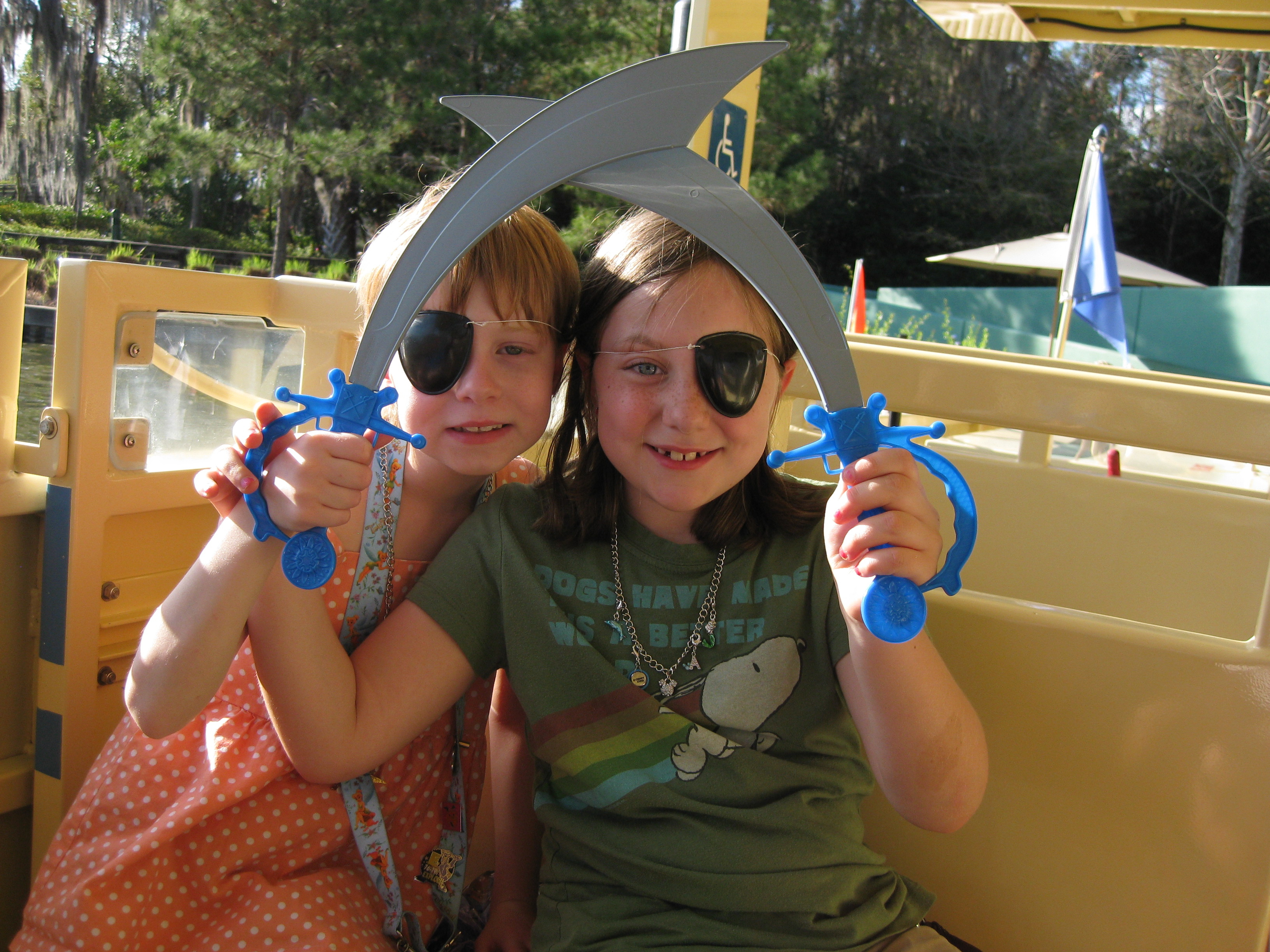 Here the girls were pirates on our boat ride from Downtown Disney to Melissa’s vacation diggs!