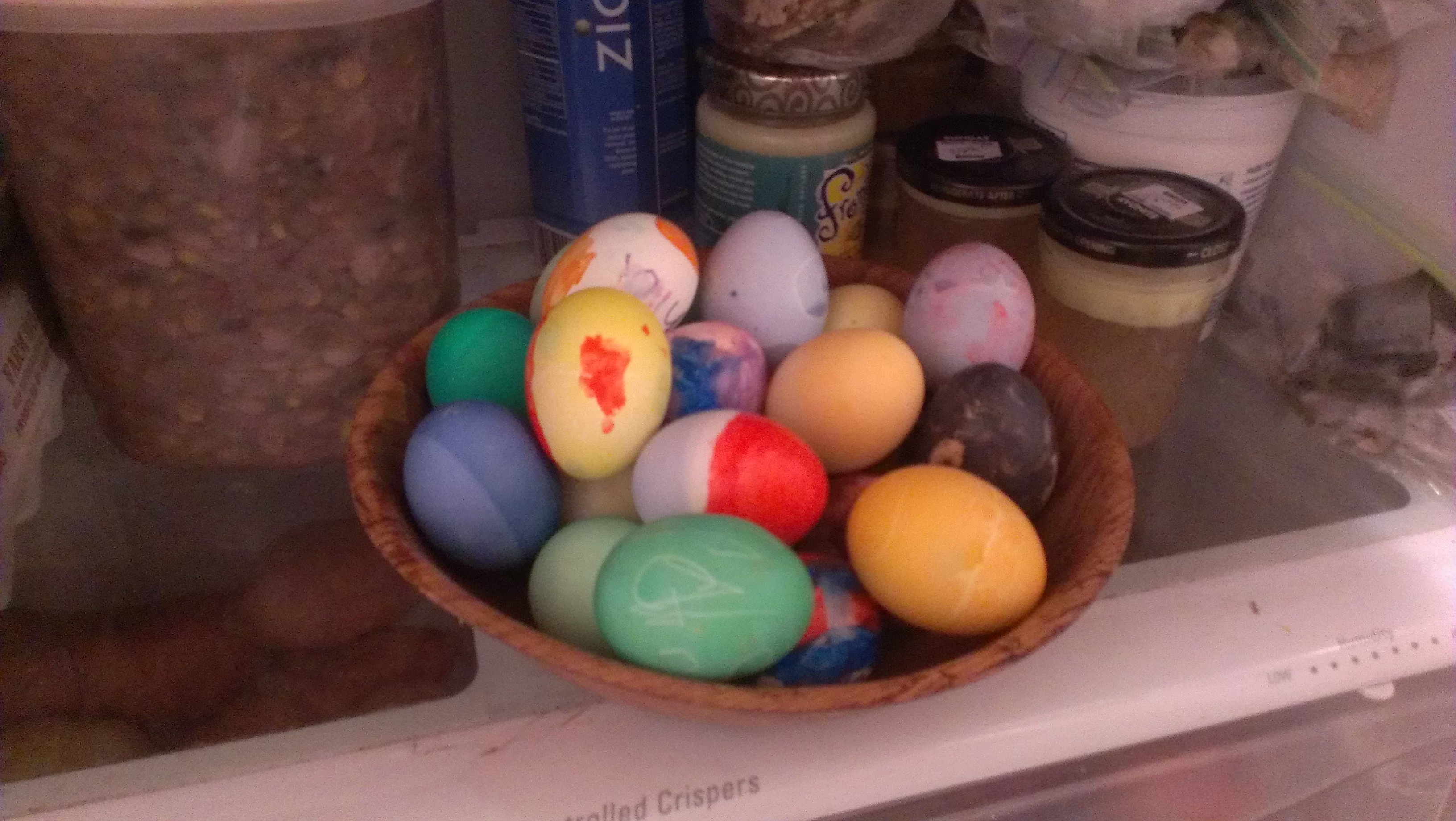 Grace requested that we stay with Mariah at Rainbow Hearth for her birthday celebration.  The happy couple that had just gotten married (my good friends Puja and John) were still planning on being there along with their daughter Sophia.  The joy and happiness that began with the celebration of the joining of their lives continued on in the celebration of my beautiful Grace.  And we had a lovely Easter Day in between!  Here are the eggs we colored for the Easter Bunny to hide! (I wonder if he has an Australian accent?)