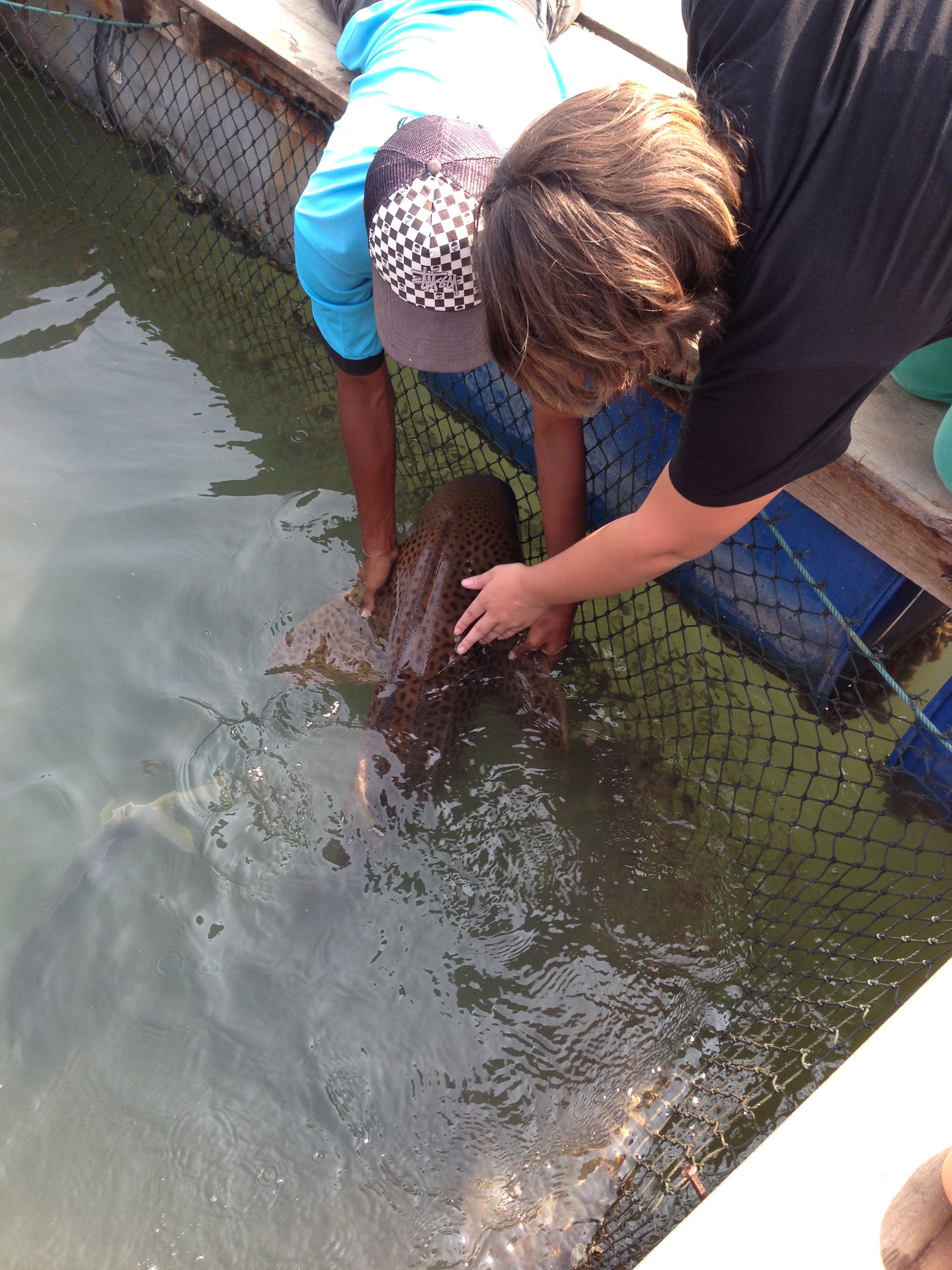 We met another family there and ended up sharing a boat for a few hours on a mangrove tour.  We stopped at a fishery where the kids got to see some fish like grouper, stingrays, sharks, and crabs.  Here is a pic of Grace petting a leopard shark!