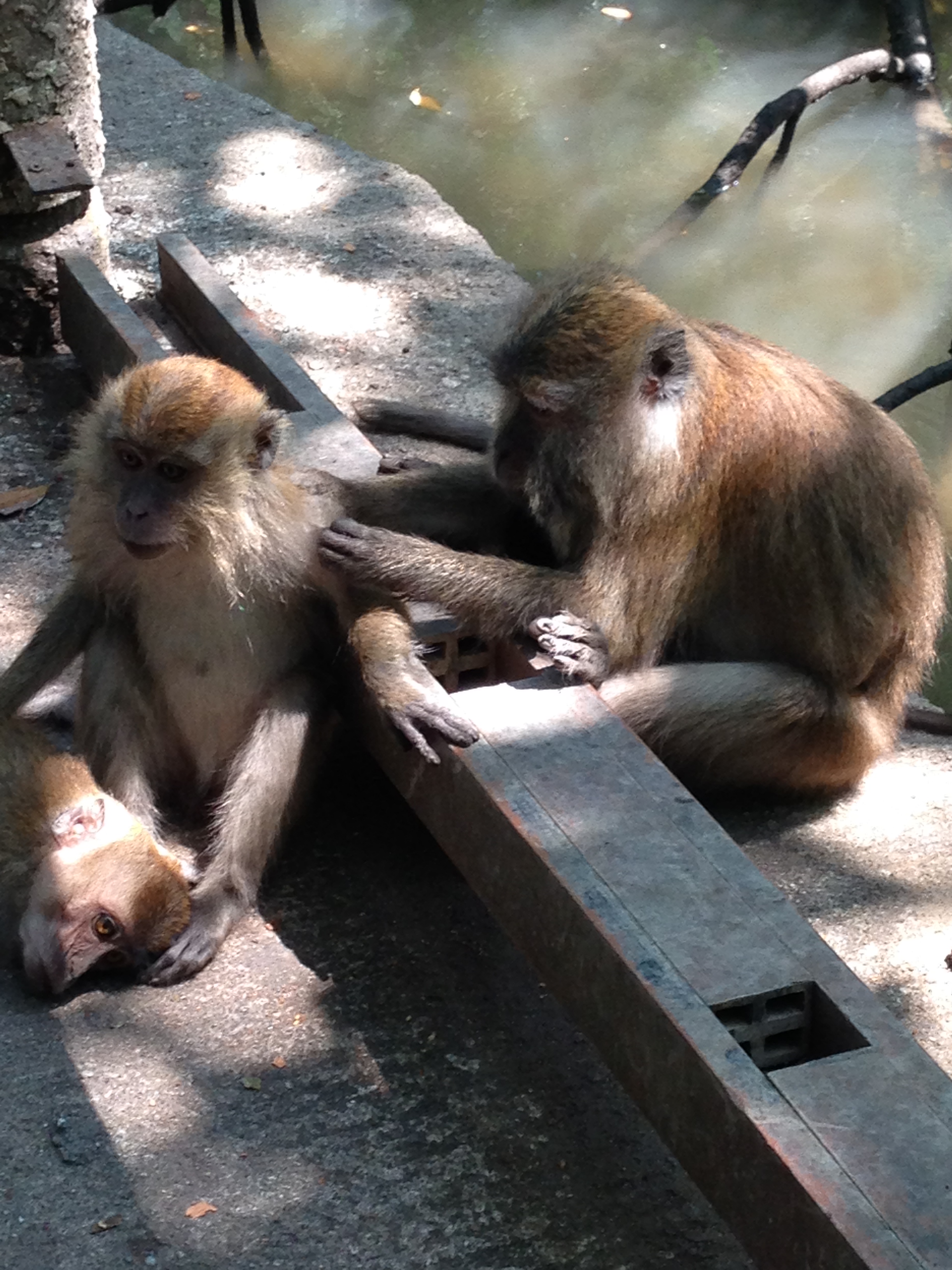 We also got to see some monkeys up close and personal.  Some of them were just hanging out and grooming each other, while others crowded around the water bottle to get a drink!