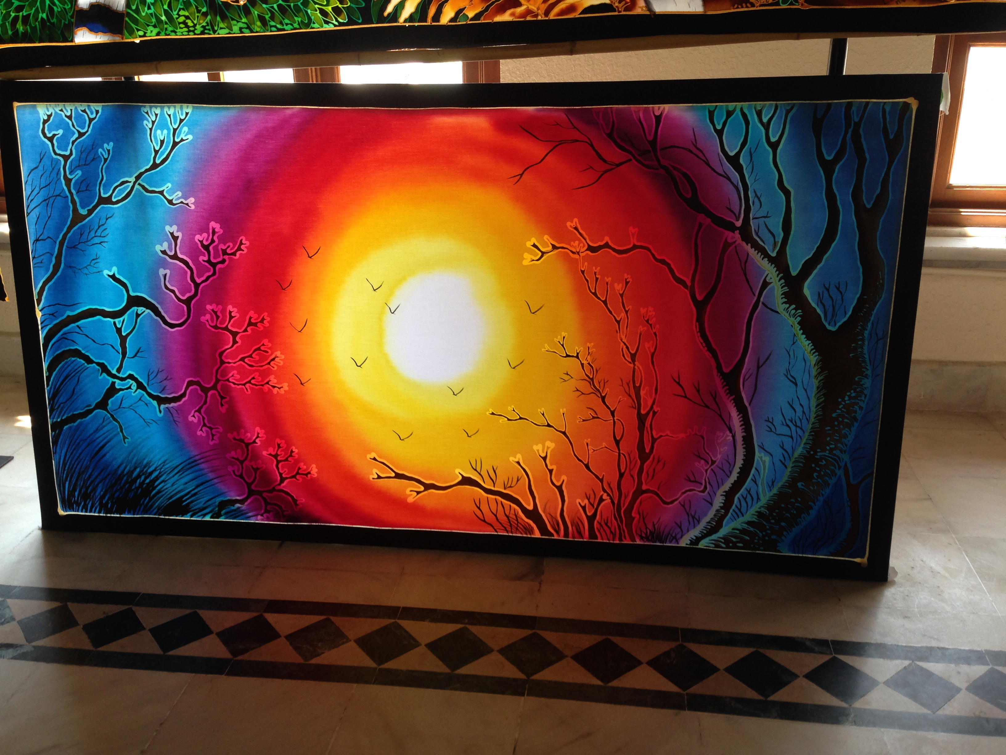 Oh, and one more thing.  We found a new art form called batik painting. The outline (for beginners) is done in a wax type media and then the paint is bled on using a combination of ink and water.  The girls enjoyed doing that while Sy got a henna tattoo!  At the art center where we did this there were some AMAZING batik paintings….I regret not purchasing one of these!