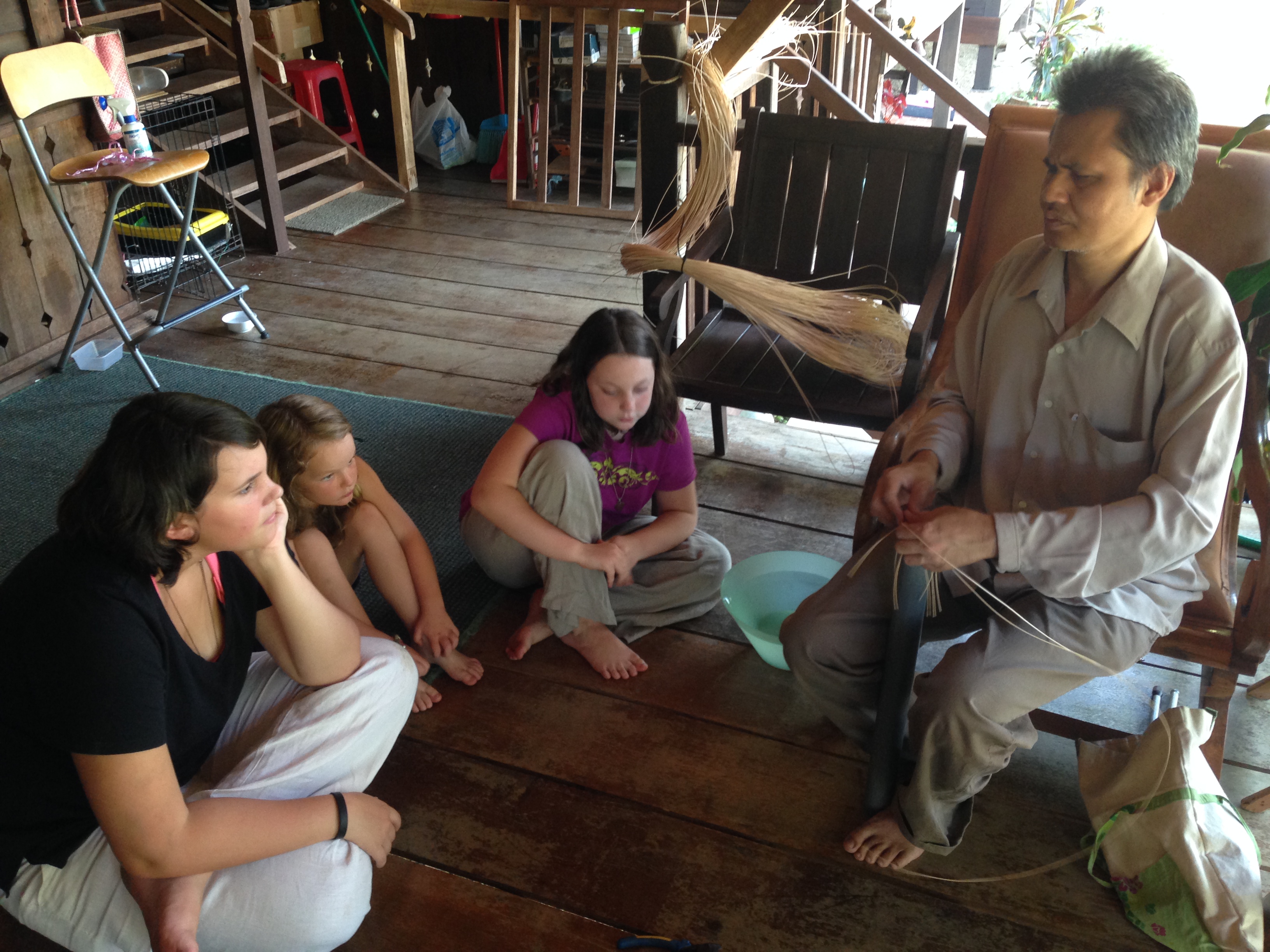 On our last day at Fox Hill, Maria had her friend come out and teach us how to make baskets.  He was amazing….and completely blind.  He learned to weave baskets by touch alone and is so adept at it he can feel ours to see if we are doing it right!  It was difficult and lengthy but an afternoon well spent.