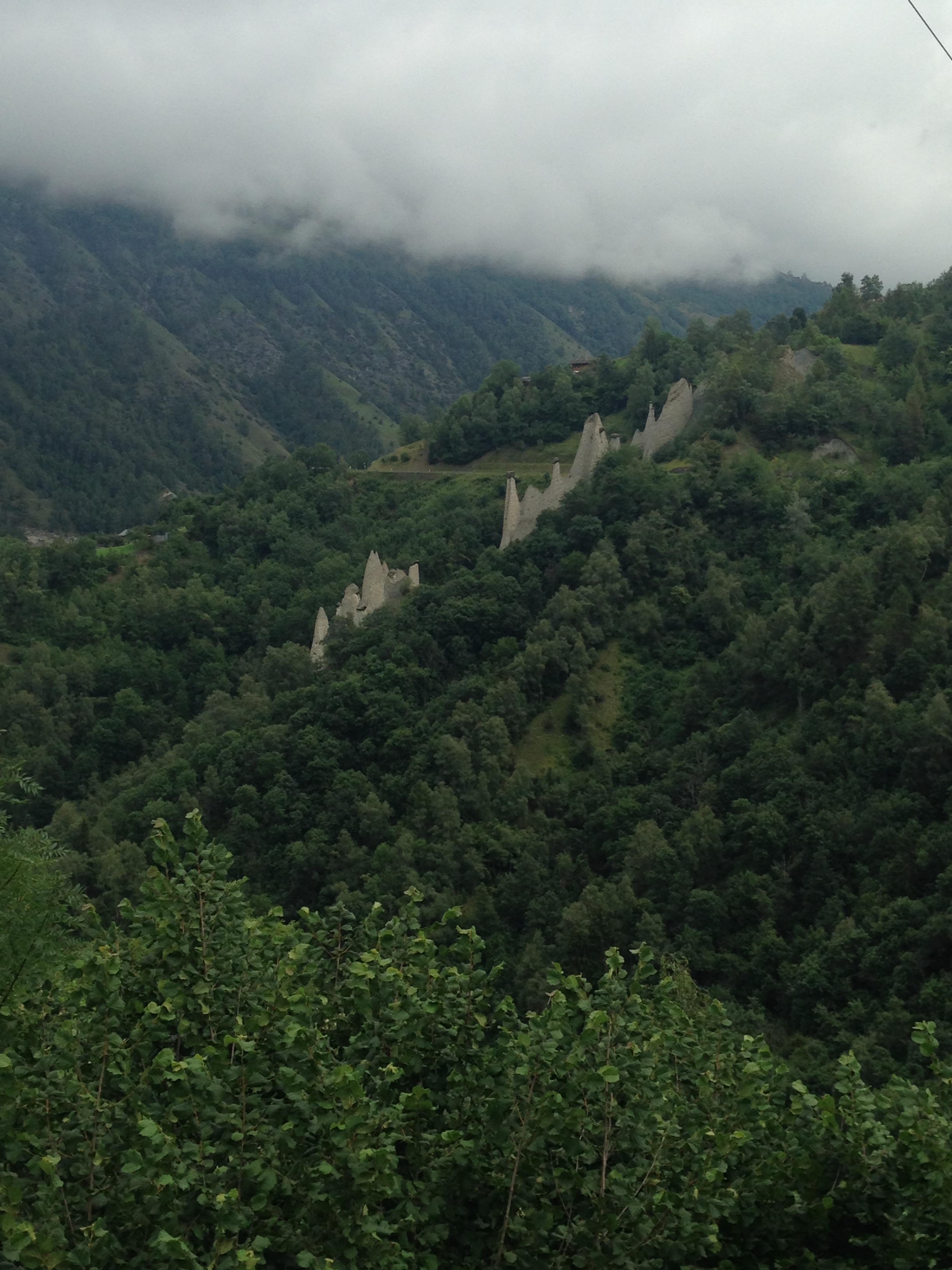 On our trip down into town, we were happy to see a well known sight. The Earth Pyramids of Euseigne. The are one of Switzerlands most protected geological sights. They are conical monuments leftover from the ice age.