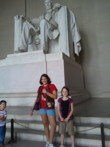I have to say that for those of you who haven’t been to DC and are planning to go, do not be deceived by the distance from the Washington Monument to the Lincoln Memorial.  It looks fairly short…but you get halfway there and need to take a nap!  Especially when the legs following you are rather short.  But all in all we really enjoyed our day in DC.  And the kids loved riding the Metro!