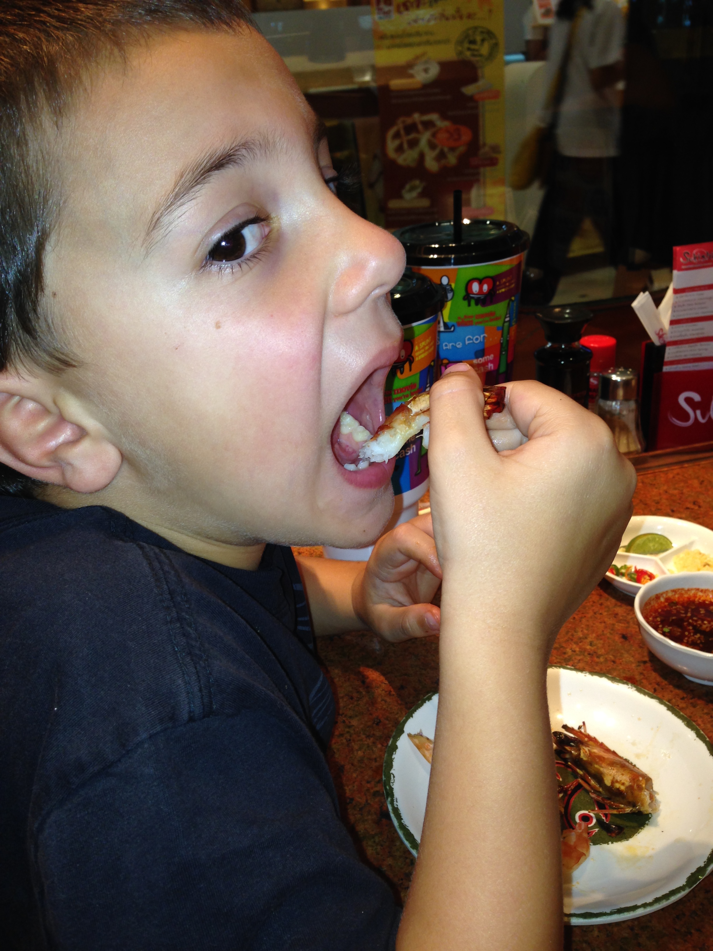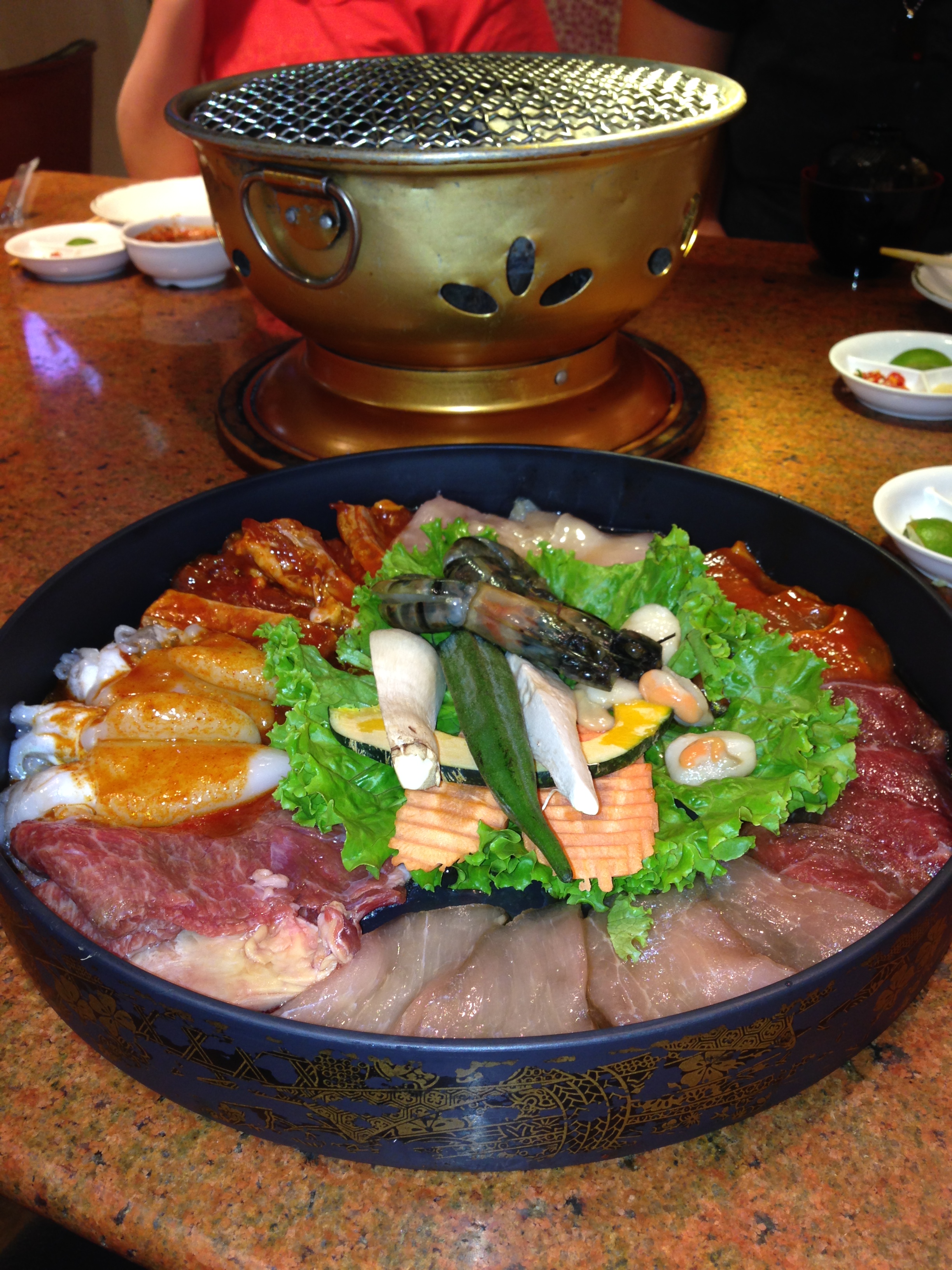 It was a bit difficult to figure out what to do because no one spoke enough English to understand us.  However, we introduced ourselves to a nice young Australian bloke who gave us the rundown on what to do.  We basically just picked a bunch of stuff off the menu and then proceeded to grill the items and eat them.  There was a wide variety of meat and vegetables and we tried to order the platters that had a little bit of everything.  The only downfall was that the  grill was fairly small and the kids had to take turns using the tongs!