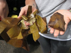 We also tried something that…well…I have no idea what it was. It was some kind of rice with a pink slimy substance wrapped in a banana leaf. I’m not so sure any of us will try anything wrapped in a banana leaf for a while…it wasn’t terribly appetizing!