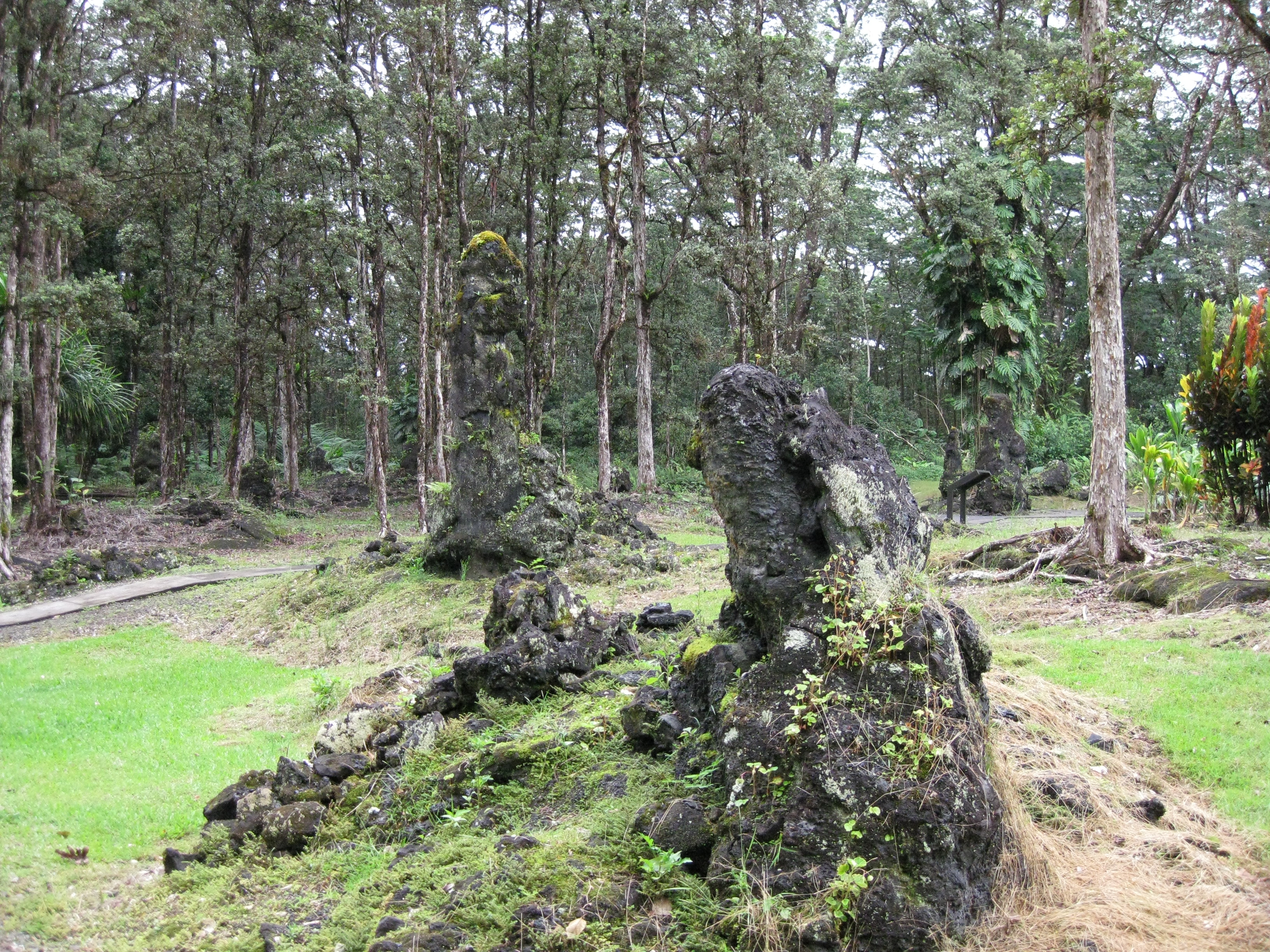 Up next was a drive to the Lava Tree State Park. Lava trees formed when fast flowing lava runs into wet ohi’a trees. As the flow keeps going it leaves a thick coating around the tree (which is dying). After it’s all said and done there are these big piles of lava rock in the shape of tree trunks. It was pretty neat.