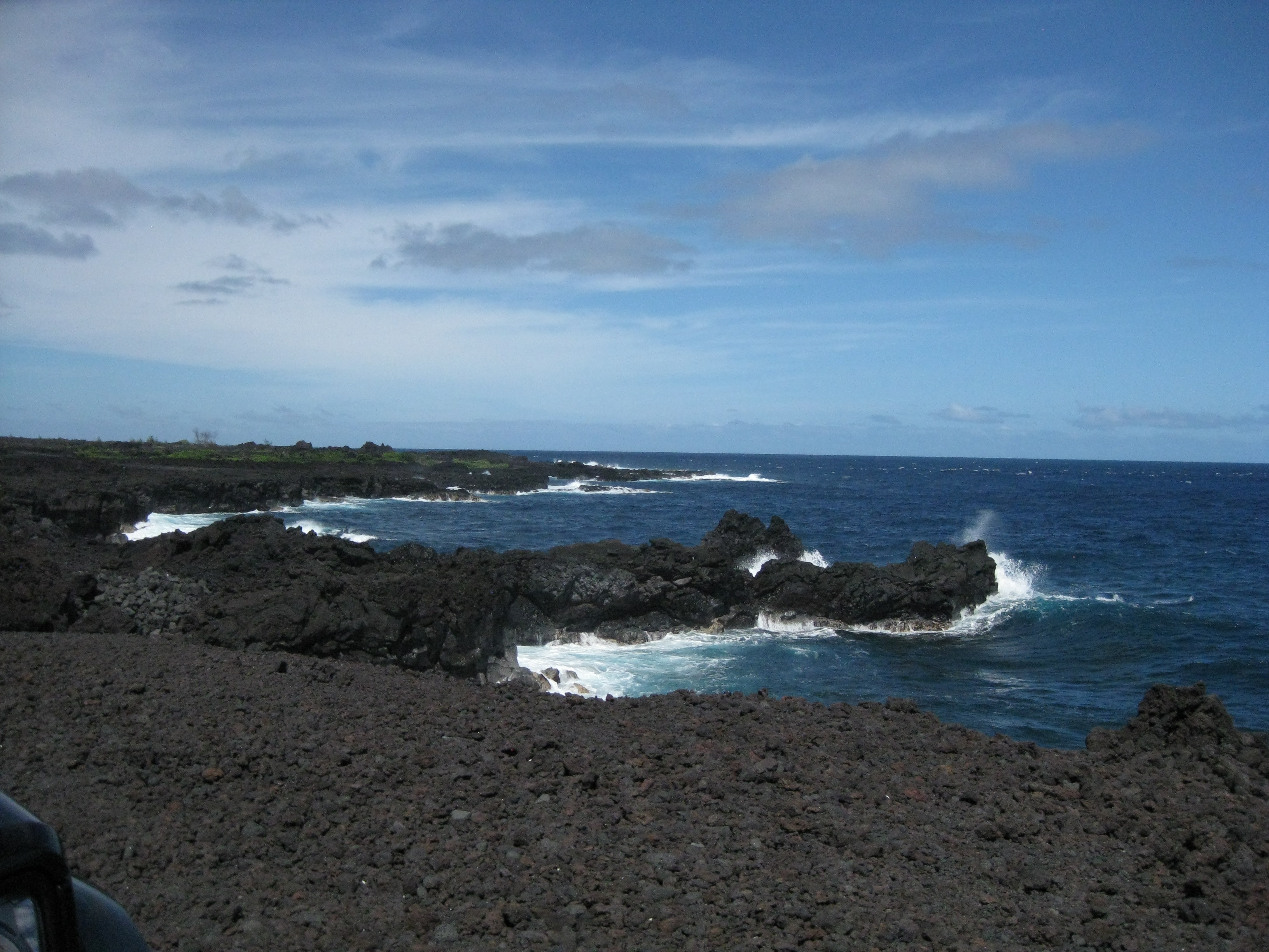 At the end of highway 132 is a field of lava dating back from a flow in 1960. Mountains of lava that measured 3/10 of a mile high produced so much lava that it wiped out an entire town. Kapoho.