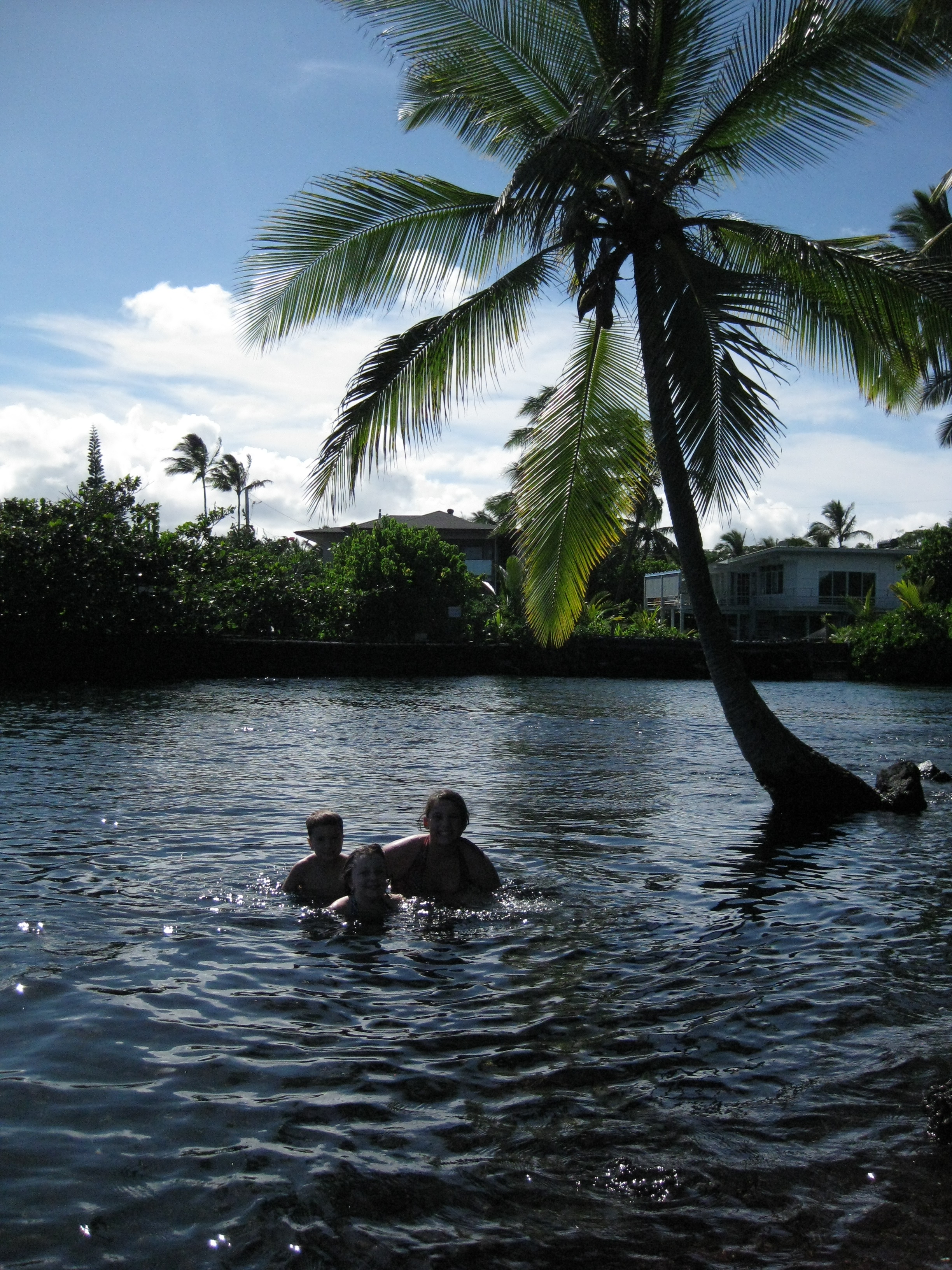 As we kept going along the lava on Kapoho Bay, we headed towards a truly awesome experience. Just imagine a calm inlet, totally protected from the surf and waves. In the crystal clear water you can see a few fish and maybe a turtle frolicking around. Sounds good yeah? Now how about if I said it was heated? Yep…I said heated….complements of Madame Pele. She sends out heated fresh water from the bottom of the inlet and keeps the water in the neighborhood of a comfortable 90 degrees. It’s called Champagne Pond. The only way to get into the pool is to either know someone in the gated community, or do what we did and 4wd in via the lava field. We learned that all beaches are public, but many roads are private. Sometimes you just need big tires 🙂