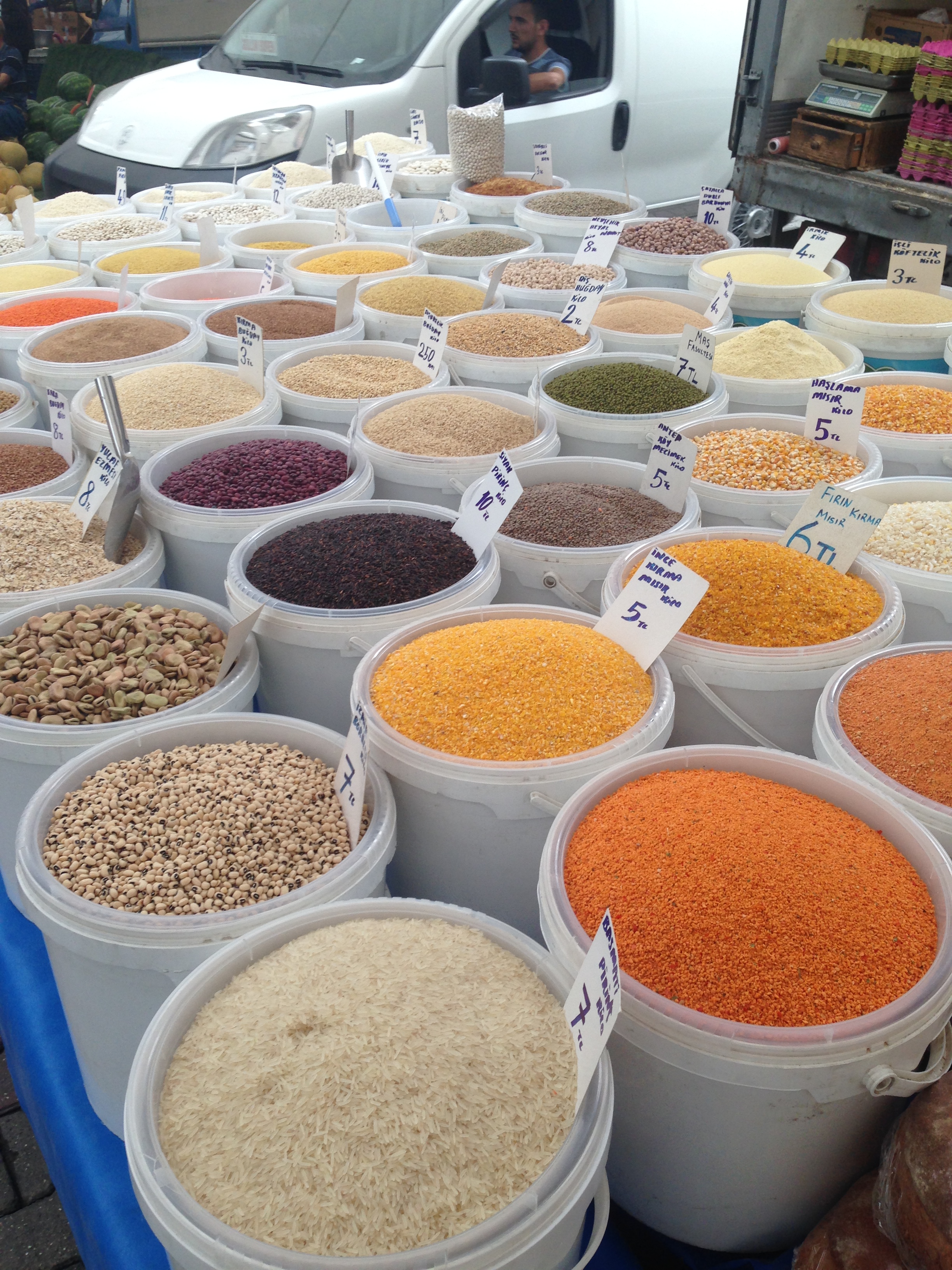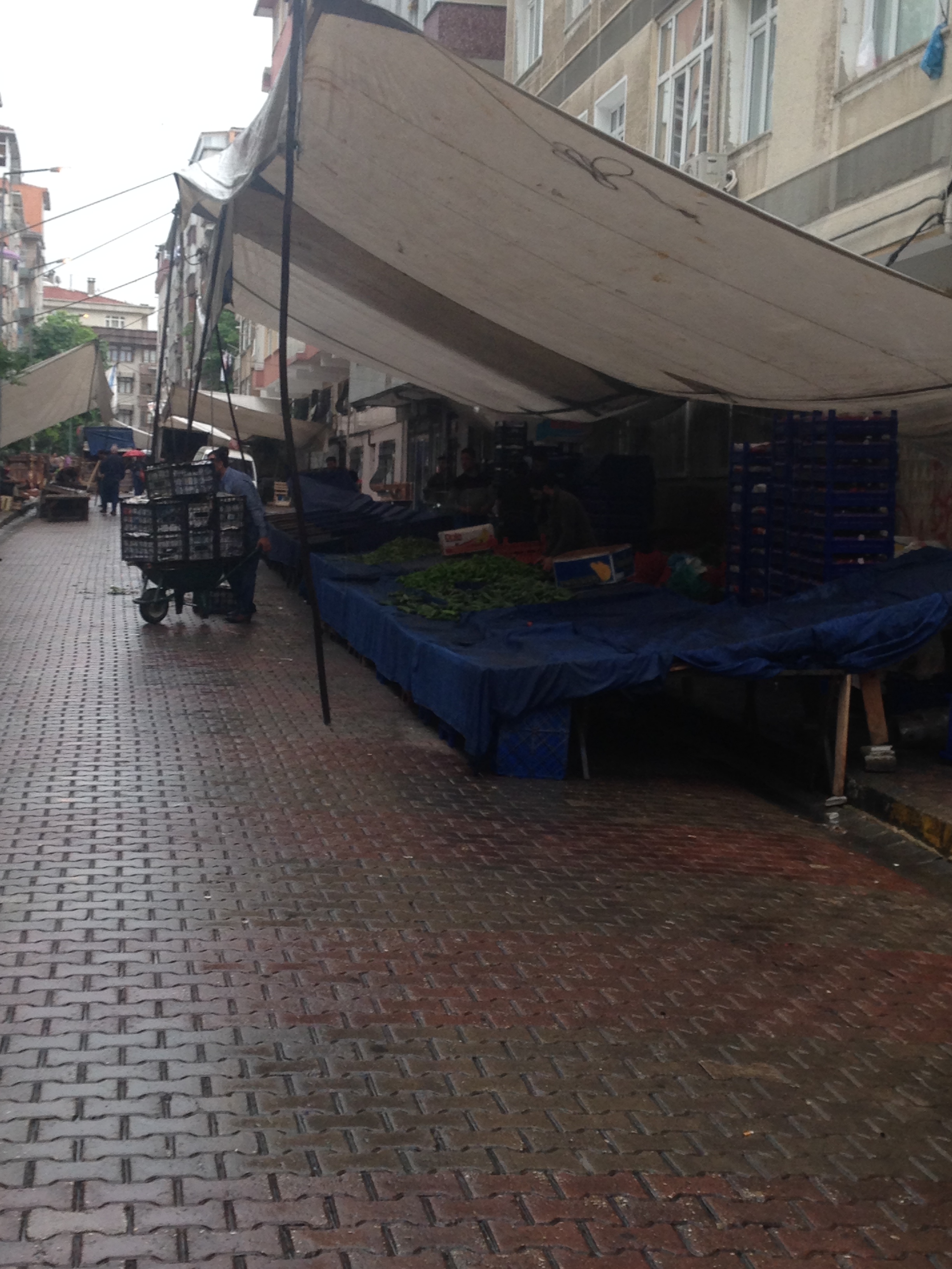 One of the highlights of our trip to Istanbul was our fortunate timing that allowed us to experience the weekly bazaar! I was a little unclear to begin with when our landlady told us there would be a bazaar. To me that means old trinkets and clothes and other miscellaneous items….however, to them, it meant a fresh market. A HUGE fresh market. (with a smattering of clothes and trinkets here and there). And it was right outside our apartment!!