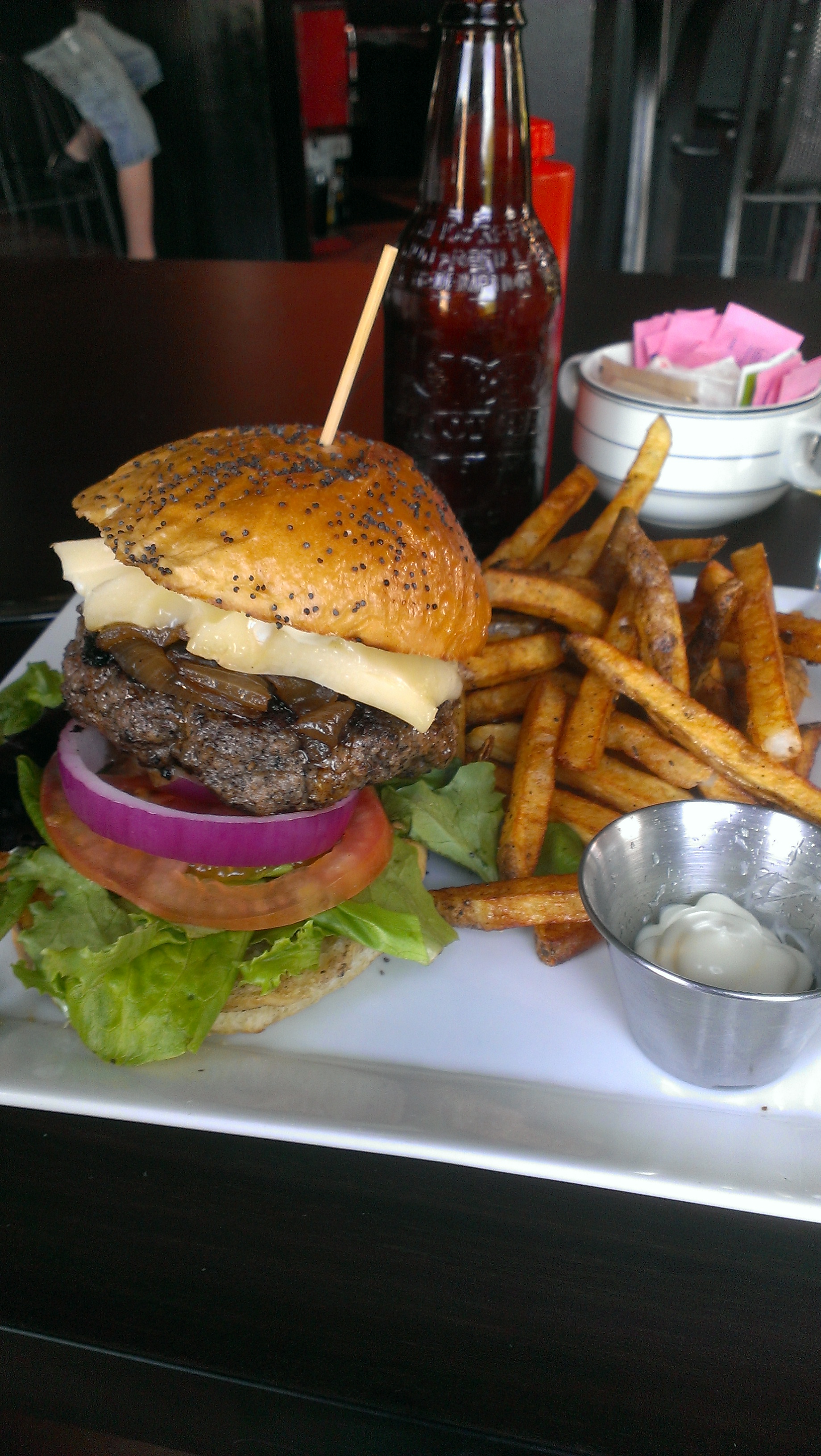 They serve their house ground burgers (made with brisket and chuck) with some fresh, FRESH, cut french fries and a Truffle Aioli sauce…..of which I was simply compelled to ask for seconds!