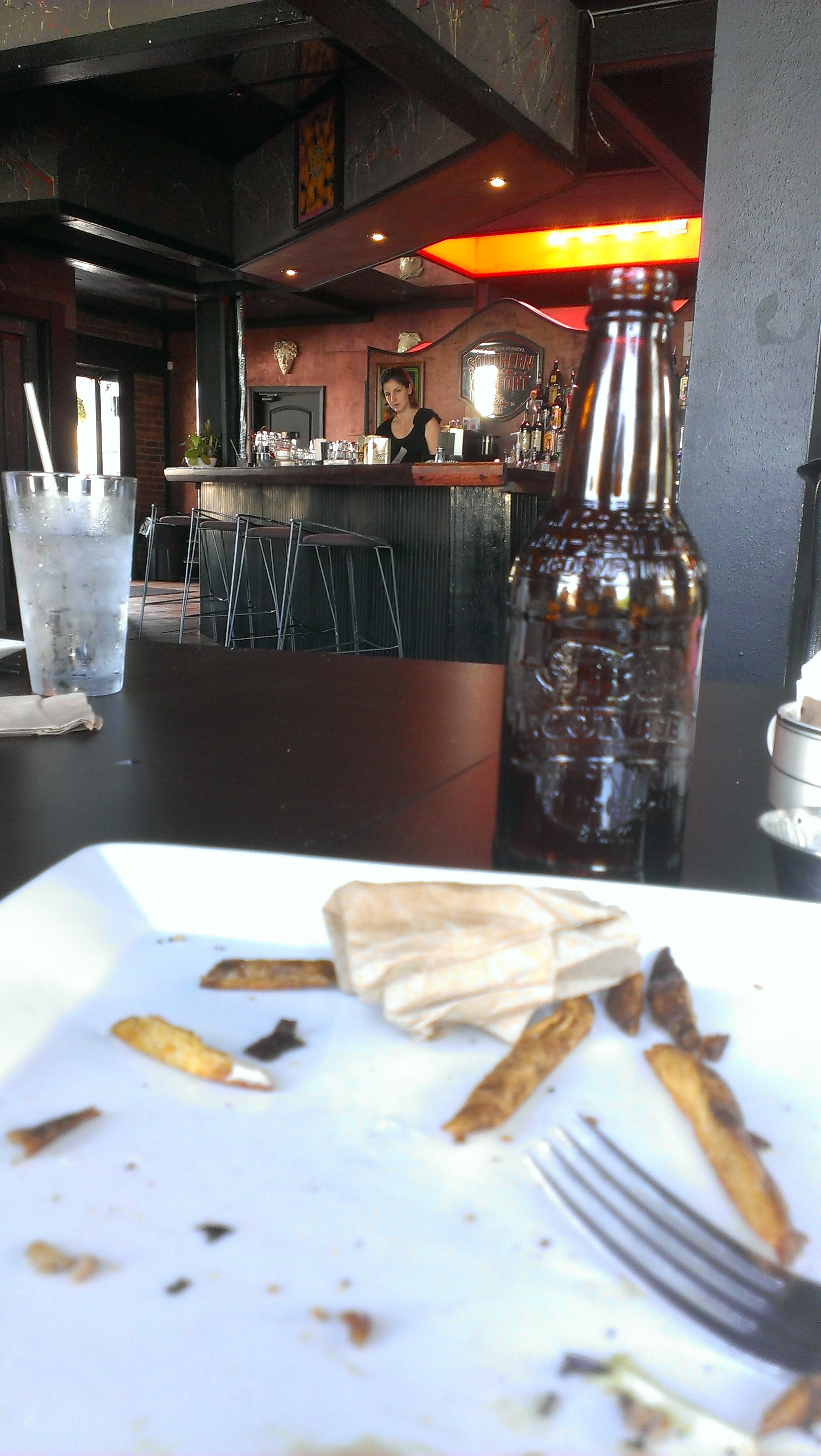 We were there in the late afternoon and it was neat seeing the kids look around at the bar and the sound system….apparently it’s cool to eat in a bar.  (tho I think saying cool belies my progression in years….)