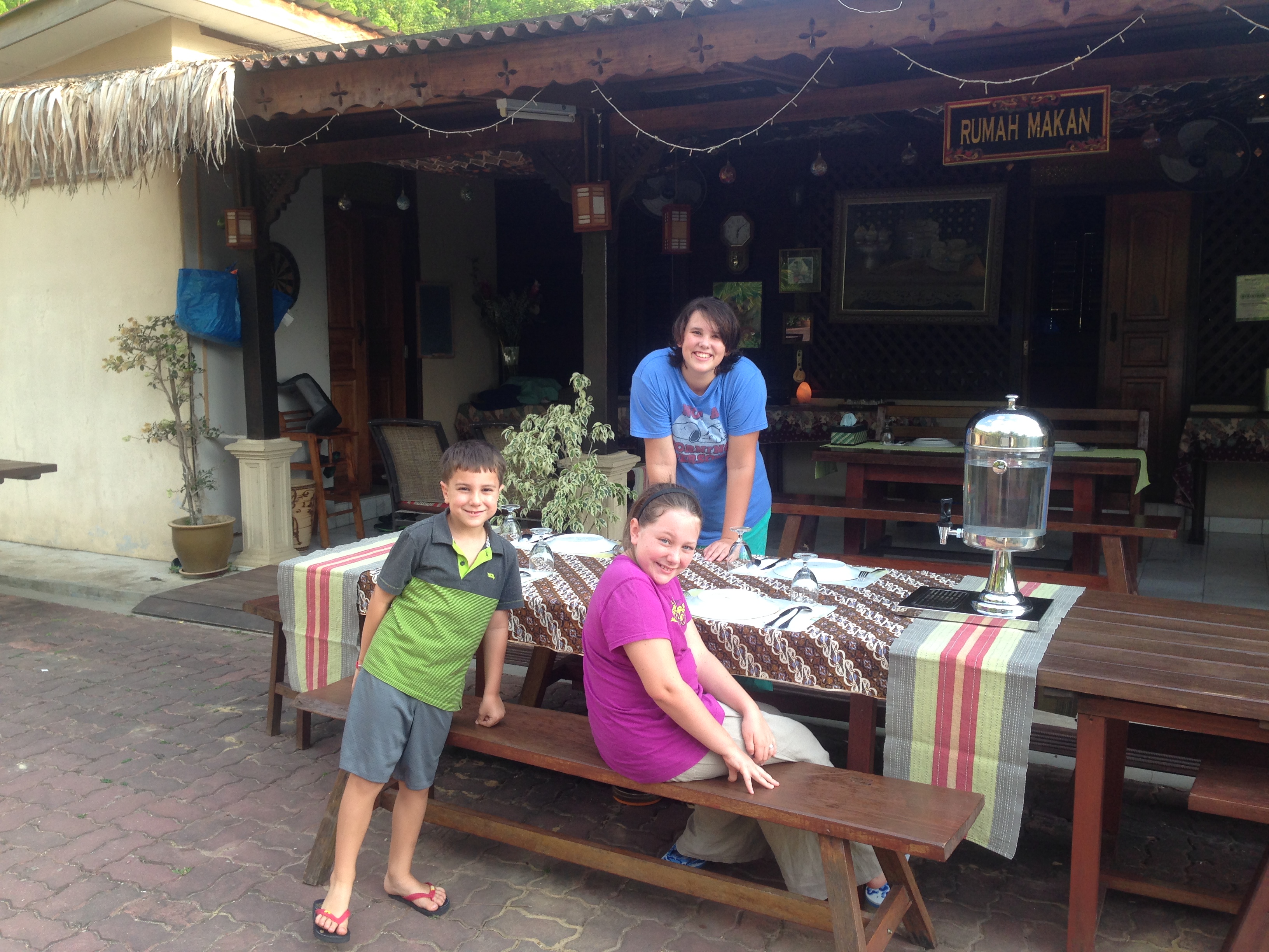 Our week in Langkawi, Malaysia was just amazing. The kids and I are sitting here waiting on our boat back to Phuket and are just repeating how great it was over and over! Just in case you’re not sure what I’m talking about, our visas for Thailand were just about at their end and we needed to cross the border somewhere to activate our second visa. Most people in Phuket do a border run in Ranong. It’s only about four hours north and you can do it all and be home for bed. I decided, after looking at Ranong, that I didn’t want to go there because I wanted this experience to be an experience and not just a mad dash for the stamp! Someone suggested Langkawi, and boy oh boy am I glad they did!! It was a great place to spend a week! We decided to splurge a bit and made our reservations at Fox Hill Resort. The reviews were amazing and it looked to have just about everything we needed: rooms, rental car, open space, restaurant, and a pool! We took a bus from Phuket to Satun where we overnighted and then caught the ferry over to the island. That was fun, and you can read all about our first stay in a guesthouse! Upon arrival at the pier in Langkawi, we went through immigration which was far easier than I had expected. We just waited in line for our passports to be stamped and we were on our way! Chef Zaid from Fox Hill met us out front and drove us out to the resort. I liked him immediately! His english is a bit difficult to understand, but his friendliness is unmistakable! It took us about a half hour and then we were there!