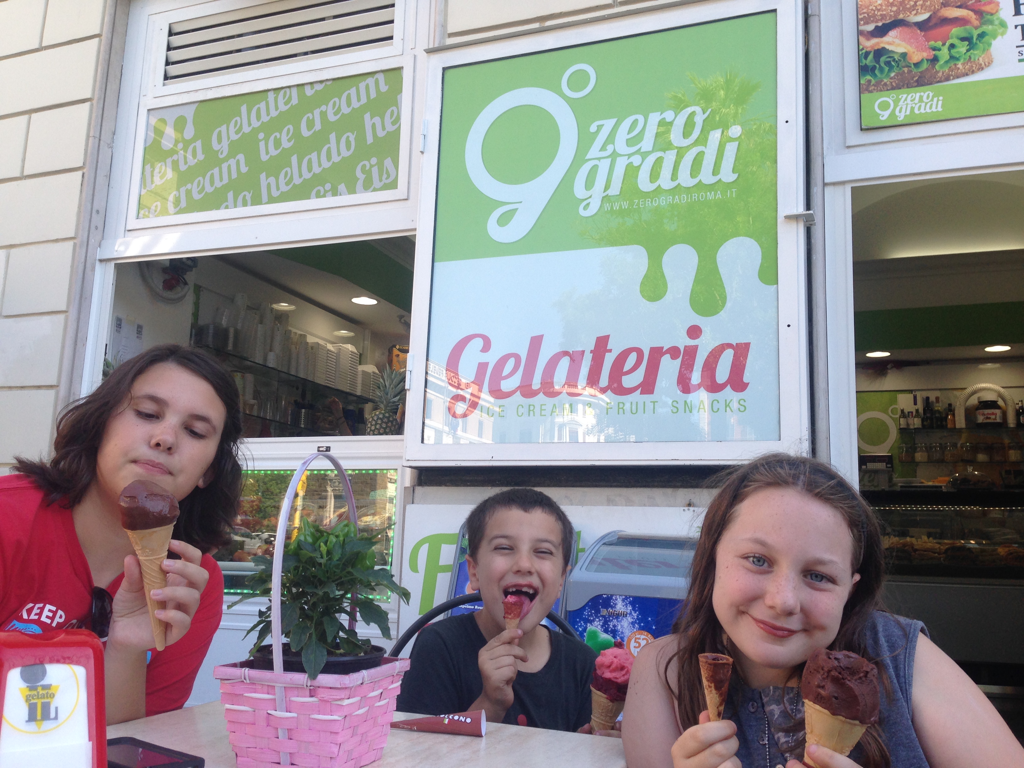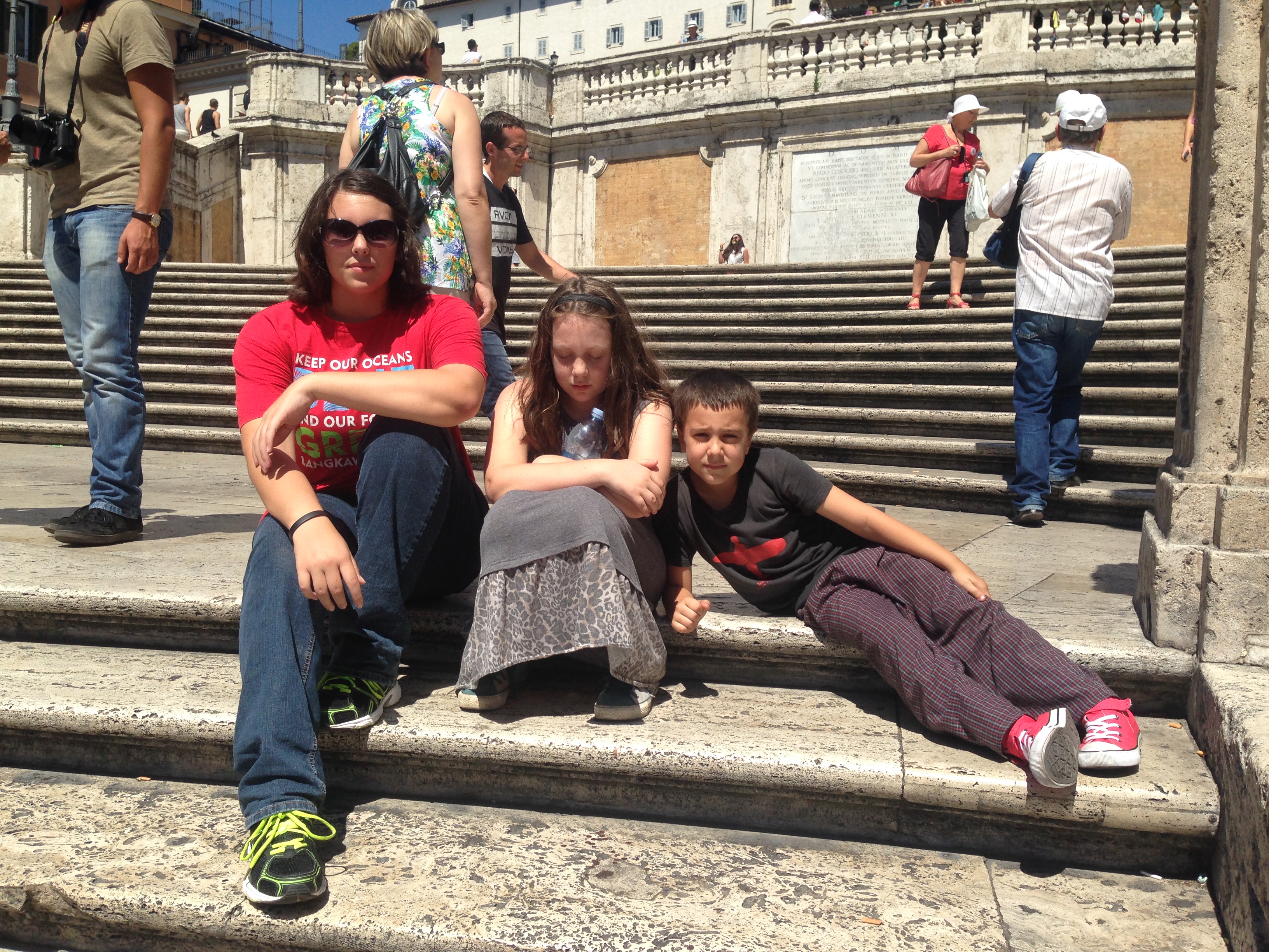 The last stop on our many days of heat and culture was the Spanish Steps. Grace recognized them from the movies 🙂 By this time the kids were so hot and tired…