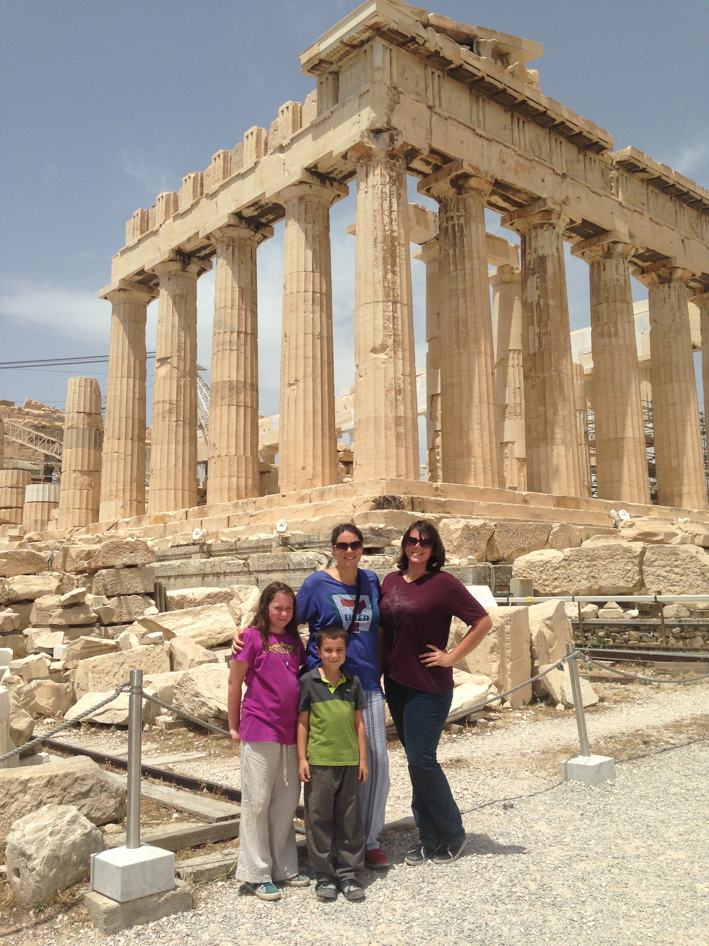 This is a photo of the kids on our first day out. It was smokin hot as we climbed all around the Theater of Dionysus on the Acropolis. Grace saw this piece of random stone and decided it would be cool to keep it….and then rethought that and said ‘Let’s just all touch it and take a picture!”.