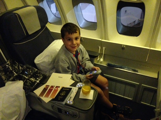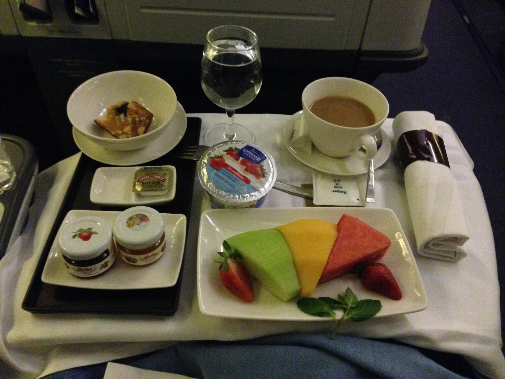 Plus their three course meals and snacks whenever made it nice to just eat then sleep. You could ring the flight attendant for a sandwich or chips or fruit at anytime you wanted, and the water was plentiful and free flowing. Each full meal (we had a grand total of three for the entire trip) was set out with lovely placesettings and cloth napkins…it was nice being so posh!