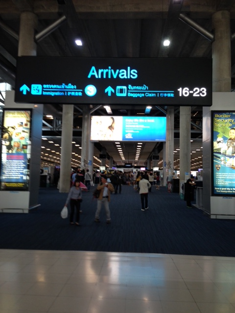 The Bangkok airport is absolutely sprawling. it took us a good 15 minutes to get to the immigration line…but they took pity on us because Sy was laid out on the floor and sent us into the short line! we got our passports stamped and we were off to find our bags. once we collected them we trucked out to the taxi line and hopped in a cab for the crazy ride to the hotel.